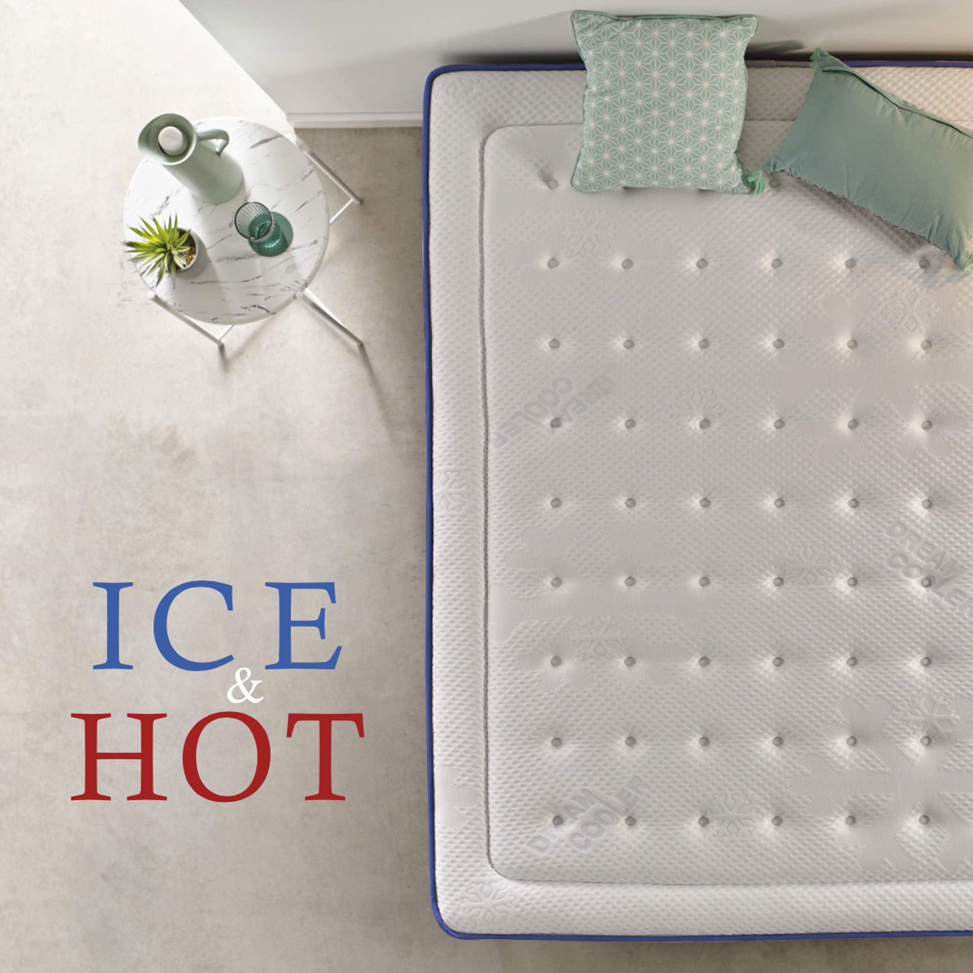 El COLCHÓN ICE&HOT está fabricado con un tejido térmico regulador con las mejores materias primas. Para poder conciliar el sueño es necesario que descienda nuestra temperatura corporal. Una temperatura ambiente elevada puede dificultar el proceso. Esta es la razón por la que se ha confeccionado este colchón en una cara con revestimiento Prime Ice. Y con Lana de Yak por la otra cara del colchón. Las propiedades termorreguladoras de la Lana de Yak son superiores a las de la lana de oveja. Preserva el calor en invierno, incluso cuando está húmeda pero también resulta confortable en climas más calurosos.