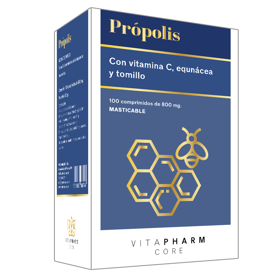 Este producto contiene Própolis, Vitamina C, Equinácea y Tomillo, lo que le confiere una notable diferencia con los productos que solo contienen própolis. Propóleo o Própolis significa en griego “pro” delante “polis” ciudad “delante o defensa de la colmena”. Es una sustancia elaborada por las abejas con resinas de los árboles, maderas y cualquier fuente que para ello encuentre, mezclándolo con un poco de cera y ciertas secreciones glandulares, con esto recubren las grietas en la colmena evitando la entrada de bacterias que podrían dañar a la comunidad.