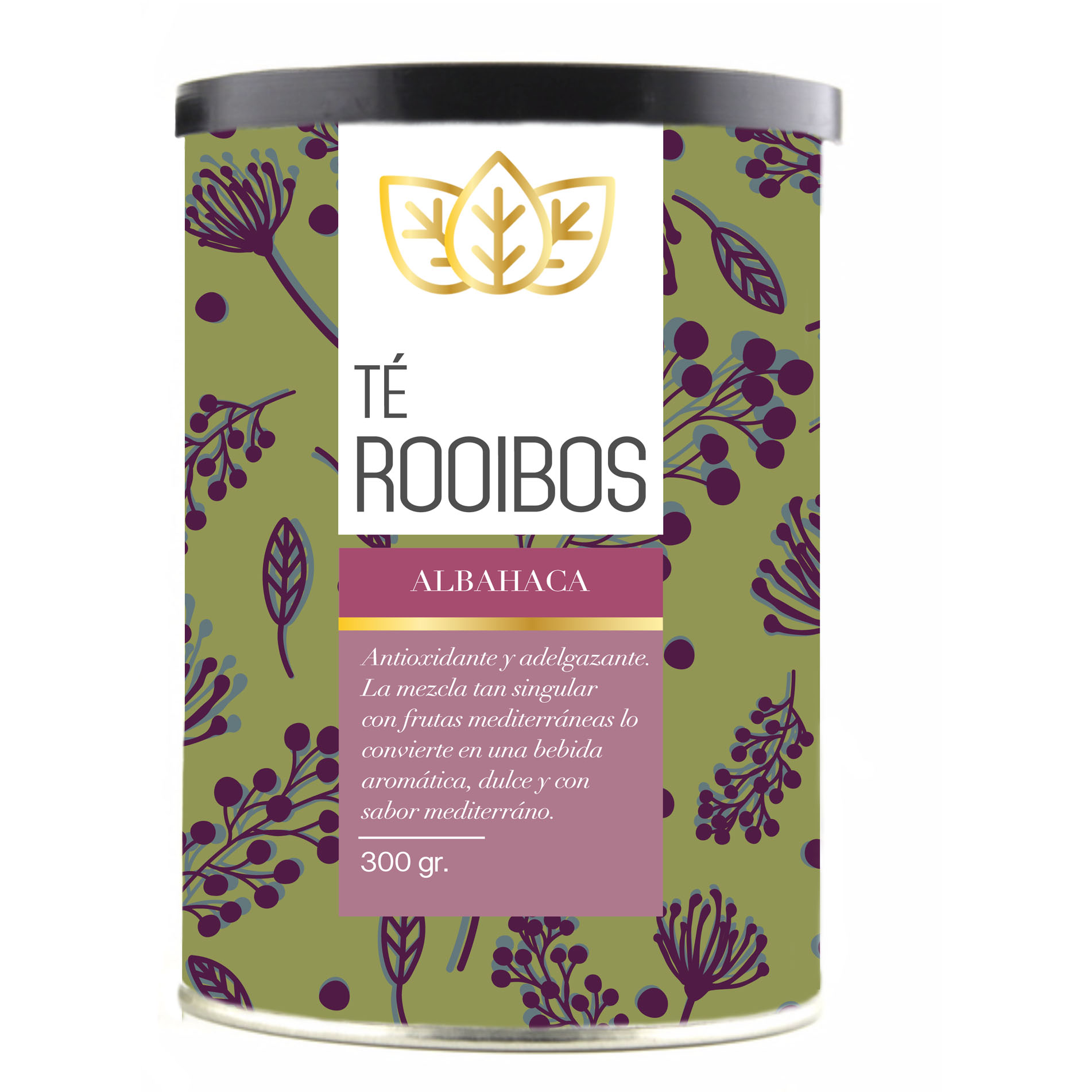 Rooibos con hojas de Albahaca. Contribuye a la relajación muscular y a prevenir insomnio. SIN TEINA.